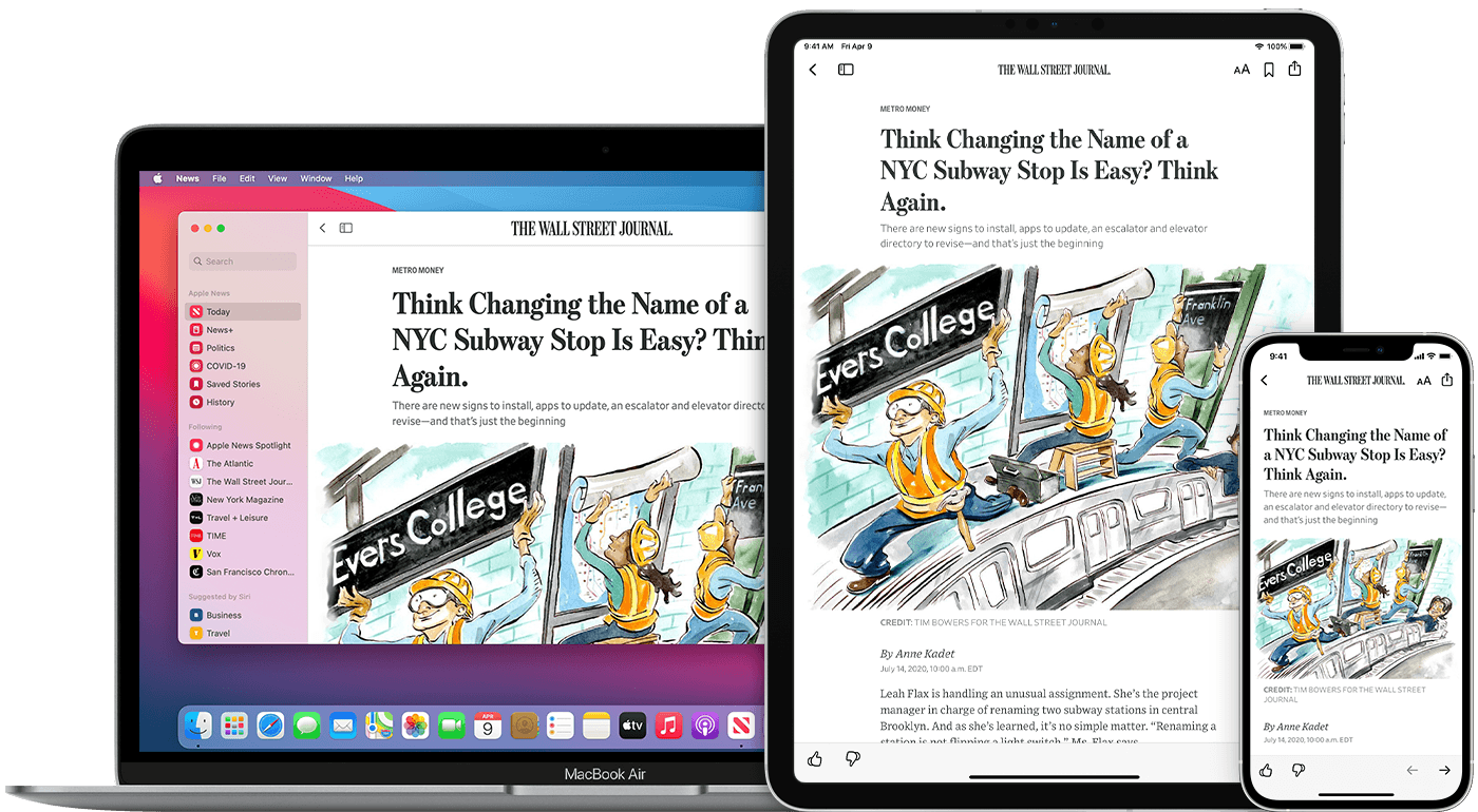 When you start using Apple News, you’ll see the most popular content. But thanks to on-device intelligence, the more you read, the better Apple News gets, with suggestions for relevant stories to suit your interests.