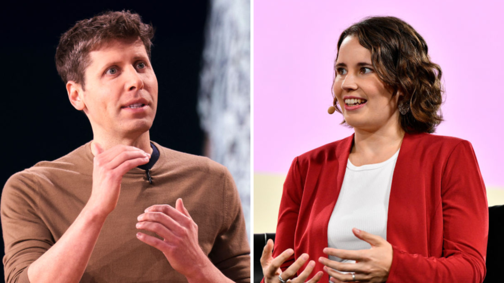 A composite of OpenAI CEO Sam Altman and former OpenAI board member Helen Toner.