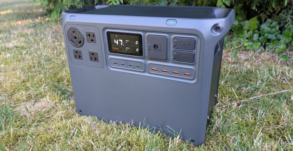 Like other portable power stations, the DJI has a collection of standard AC ports, USB-C, and USB-A options. But unlike other power stations, the DJI Power 2000 includes two SDC ports which have the ability to quick-charge DJI drone batteries. Two of the USB-C ports are capable of 140W output which will be ideal for recharging laptops.