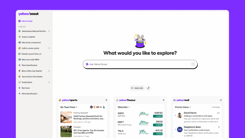“The open web is essential for building quality AI experiences and we are committed to building Scout in a way that’s trusted by users and sustainable for publishers,” said Eric Feng, SVP and GM of Yahoo Research Group.